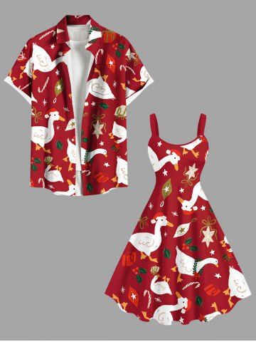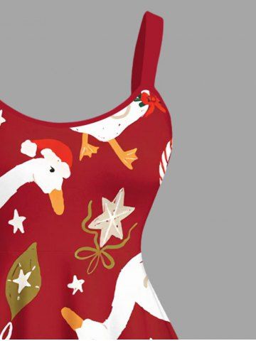 Plus Size Christmas Hat Goose Candy Gift Print A Line Dress - Red - 4x