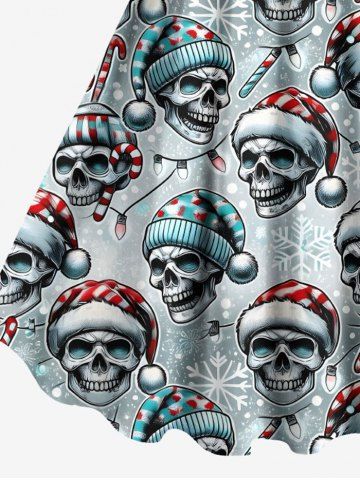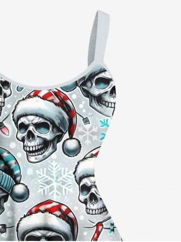 Plus Size Christmas Hat Light Skulls Candy Snowflake Print Tank Dress - Light Gray - 5x