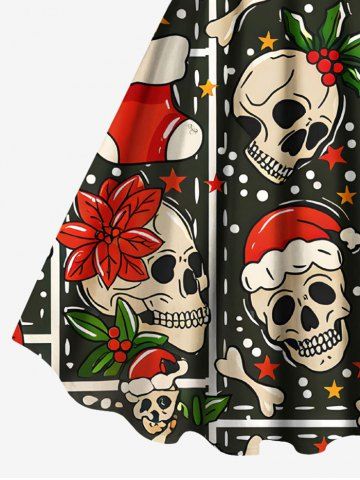 Plus Size Christmas Hat Skull Holly Print A Line Dress - Black - M