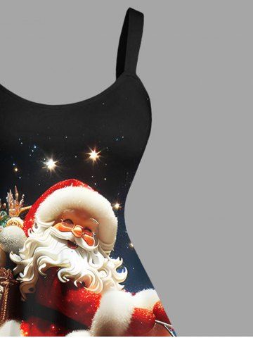 Plus Size Christmas Hat Snowman Santa Claus Ombre Galaxy Print A Line Dress - Black - 4x