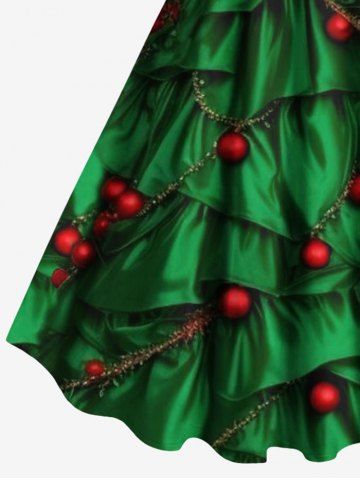 Plus Size Christmas Holly Chain Costume Pattern Bowknot Print A Line Dress - Green - 4x