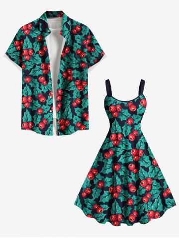 Dresses > Plus Size Christmas Holly Fruit Leaf Print Tank Dress