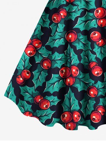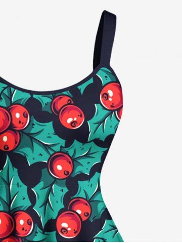 Plus Size Christmas Holly Fruit Leaf Print Tank Dress - Black - 1x
