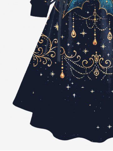 Plus Size Christmas Holly Fruit Leaf Star Tassel Print Lace Up Drawstring Hoodie Dress - Black - 6x