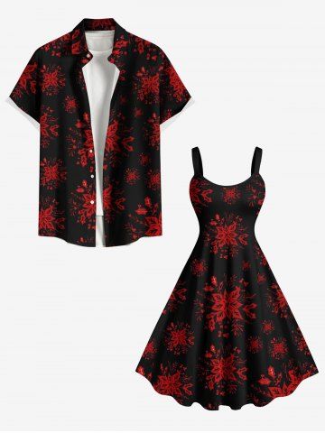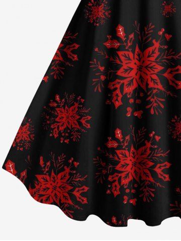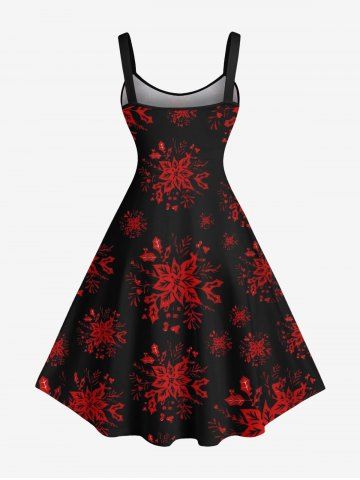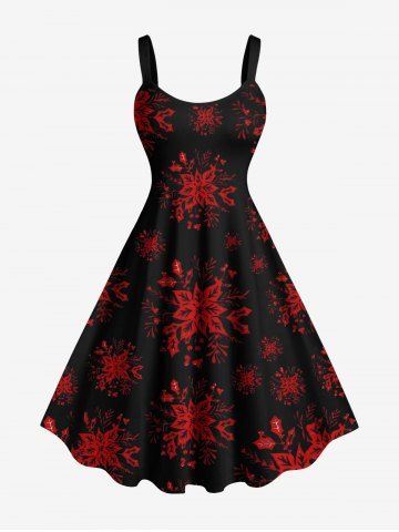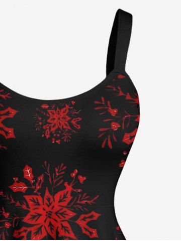 Plus Size Christmas Holly Fruit Snowflake Print Tank Dress - Black - S