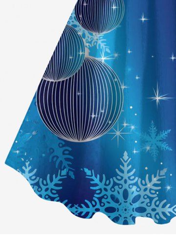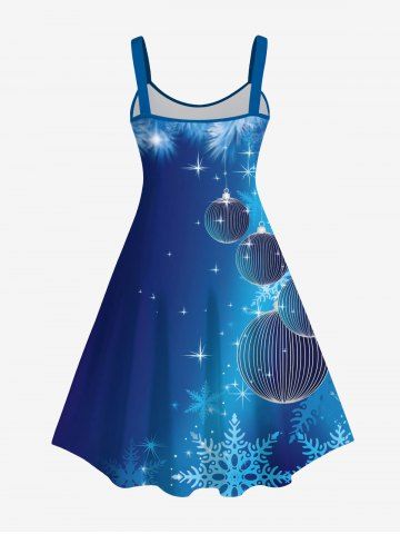 Plus Size Christmas Lantern Snowflake Stars Print Ombre A Line Tank Dress - Deep Blue - L