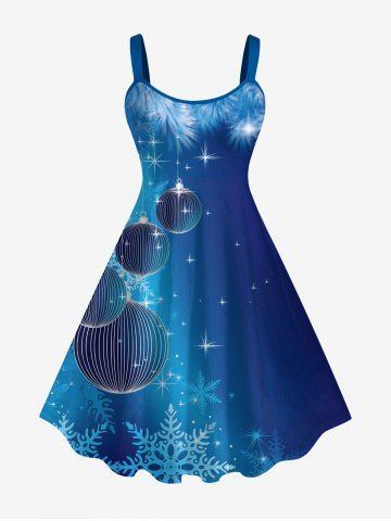 Plus Size Christmas Lantern Snowflake Stars Print Ombre A Line Tank Dress - Deep Blue - 4x