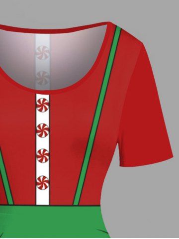 Plus Size Christmas Light Elf Candy Print Vintage Dress - Red - Xs