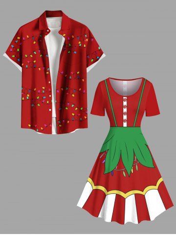Plus Size Christmas Light Elf Candy Print Vintage Dress - Red - 1x