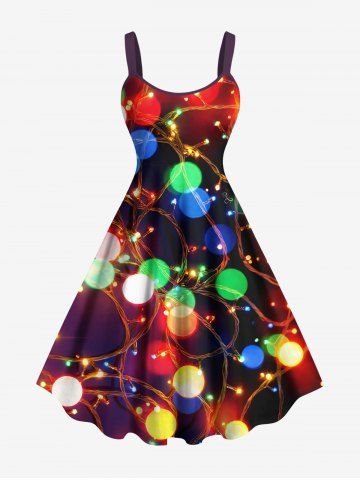 Dresses > Plus Size Christmas Light Glitter 3D Print Tank Dress