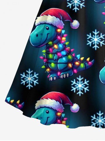Dresses > Plus Size Christmas Light Hat Snowflake Dinosaur Print Scalloped Neck A Line Dress with Removable Belt