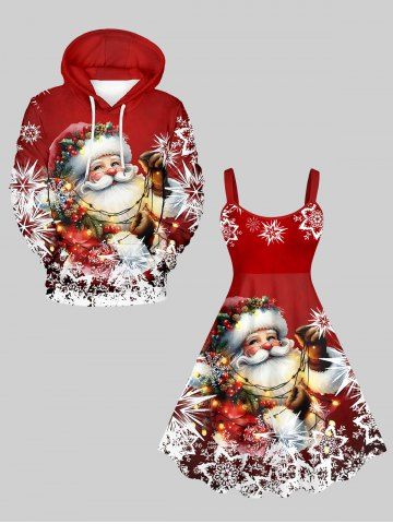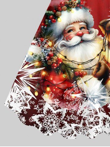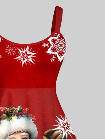 Plus Size Christmas Light Santa Claus Snowflake Print Tank Dress - Red - 2x