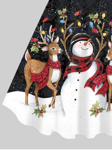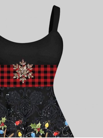 Plus Size Christmas Light Snowflake Snowman Elk Print Tank Dress - Black - 5x