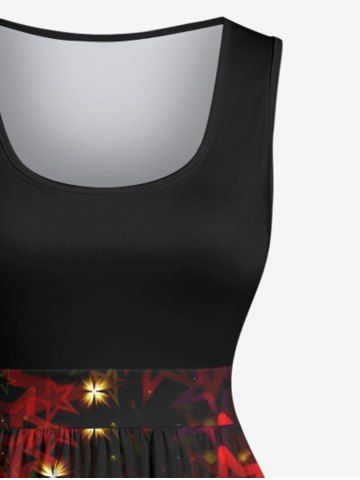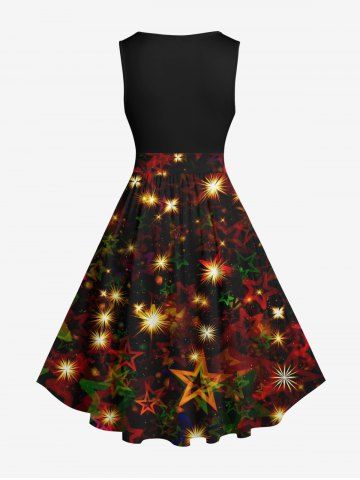 Plus Size Christmas Light Star Glitter 3D Print 1950s Vintage Dress - Black - 5x