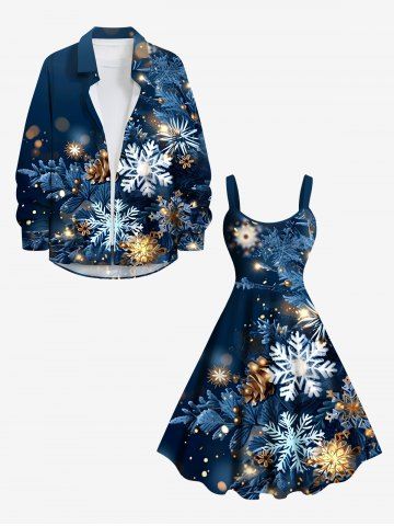 Dresses > Plus Size Christmas Metallic Snowflake Flowers Glitter 3D Print Tank Dress