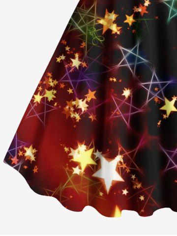 Plus Size Christmas Ombre Glitter Stars Belt Print A Line Dress - Red - 2x