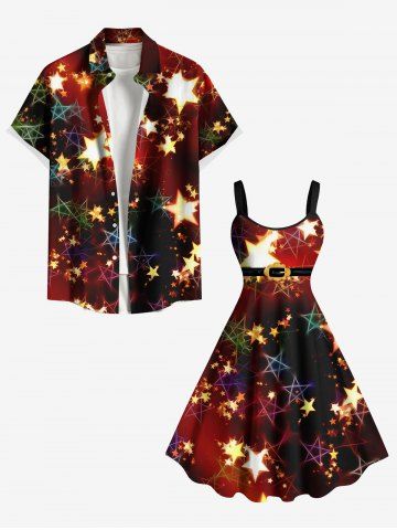 Plus Size Christmas Ombre Glitter Stars Belt Print A Line Dress - Red - 6x