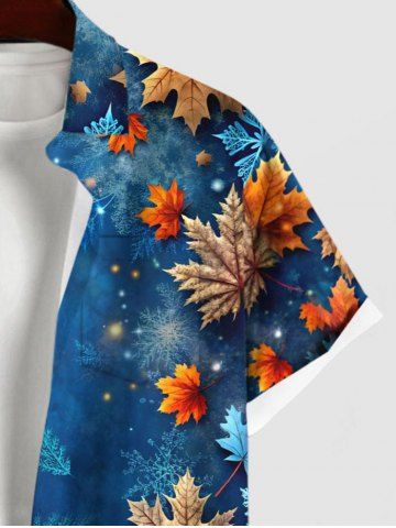 Plus Size Christmas Ombre Snowflake Galaxy Maple Leaves Print Button Pocket Shirt For Men - Blue - 2xl