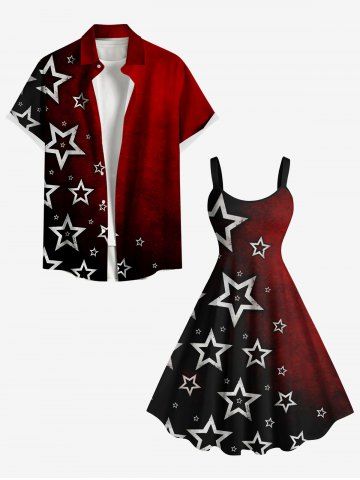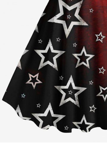 Plus Size Christmas Pentagram Star Print Tie Dye Ombre A Line Tank Dress - Red - 5x