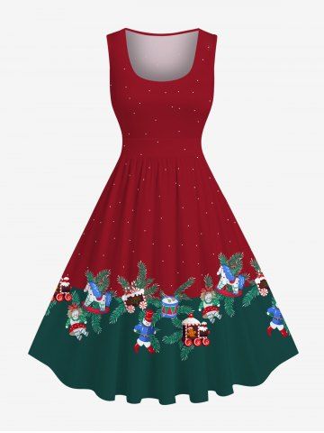 Dresses > Plus Size Christmas Pine Needles Doll Drum Candy Print 1950s Vintage Dress
