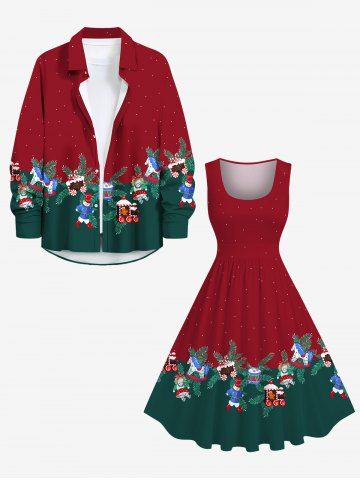 Dresses > Plus Size Christmas Pine Needles Doll Drum Candy Print 1950s Vintage Dress