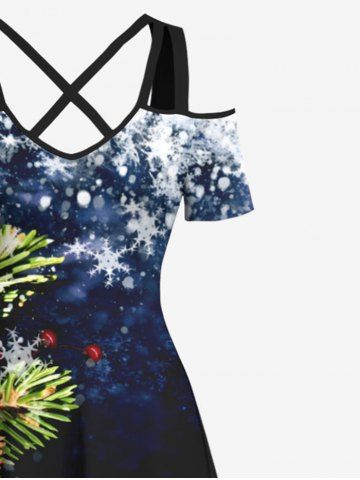 Plus Size Christmas Pinecone Holly Leaf Snowflake Print Ombre Crisscross A Line Maxi Dress - Multi-a - 3x