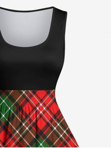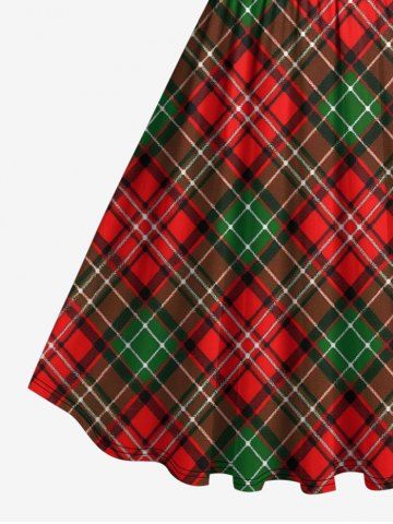 Plus Size Christmas Plaid Print 1950s Vintage Dress - Black - 1x