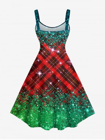 Dresses > Plus Size Christmas Plaid Star Sparkling Sequin Glitter 3D Print Tank Dress