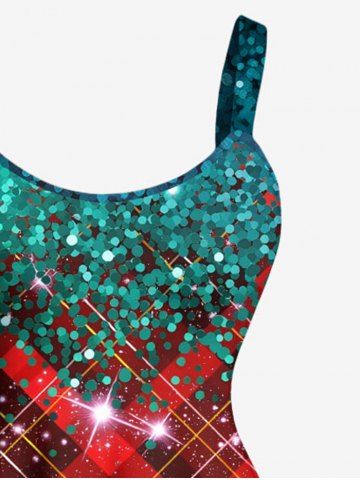 Dresses > Plus Size Christmas Plaid Star Sparkling Sequin Glitter 3D Print Tank Dress