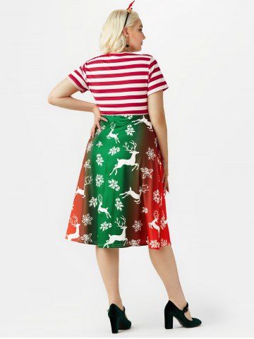 Plus Size Christmas Printed Striped Pin Up Dress - Red - 5x