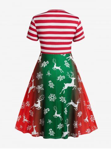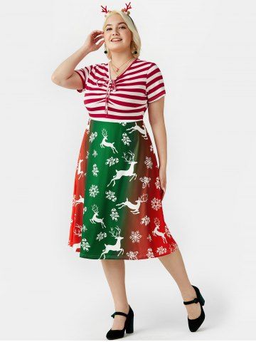 Dresses > Plus Size Christmas Printed Striped Pin Up Dress