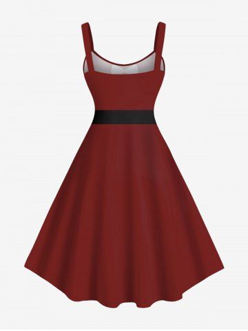 Plus Size Christmas Santa Claus Candy Bowknot Belt Print Tank Dress - Red Wine - M