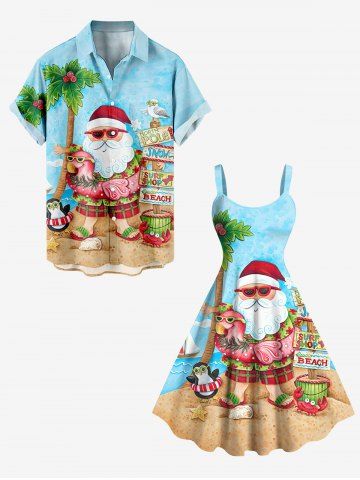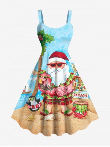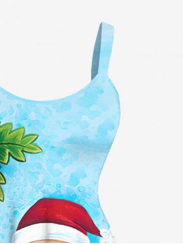 Plus Size Christmas Santa Claus Coconut Tree Flamingo Seascape Print Tank Dress - Sky Blue - S