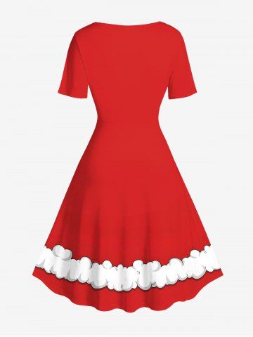 Plus Size Christmas Santa Claus Costume Bell Lace Up 3D Print Vintage Dress - Red - Xxs