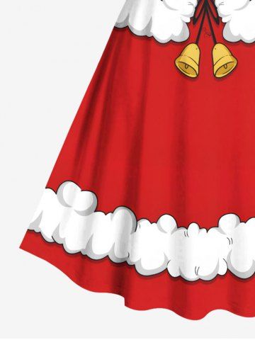 Plus Size Christmas Santa Claus Costume Bell Lace Up 3D Print Vintage Dress - Red - L