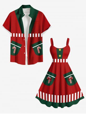 Plus Size Christmas Santa Claus Costume Candy Print A Line Tank Dress - Red - 5x