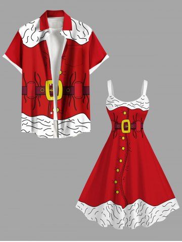 Plus Size Christmas Santa Claus Costume Print Tank Dress - Red - Xs
