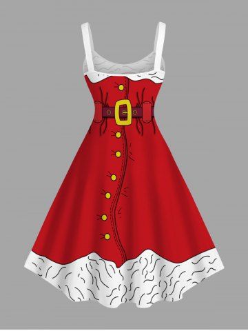 Plus Size Christmas Santa Claus Costume Print Tank Dress - Red - 1x