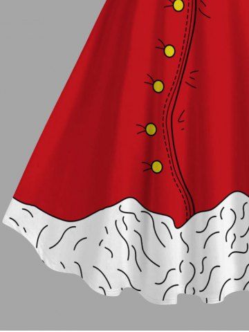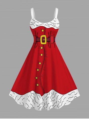 Plus Size Christmas Santa Claus Costume Print Tank Dress - Red - 6x
