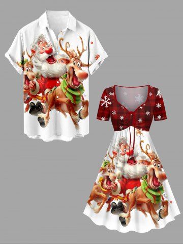 Plus Size Christmas Santa Claus Elk Candy Plaid Print Cinched Dress - Red - 1x