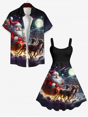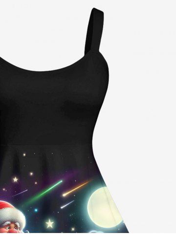 Plus Size Christmas Santa Claus Elk Moon Star Print Tank Dress - Black - 6x