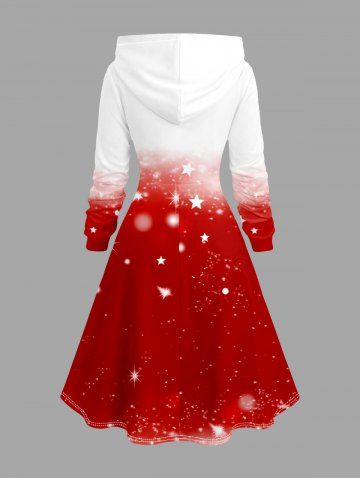 Plus Size Christmas Santa Claus Elk Star Print Lace Up Drawstring Hoodie Dress - Red - 1x