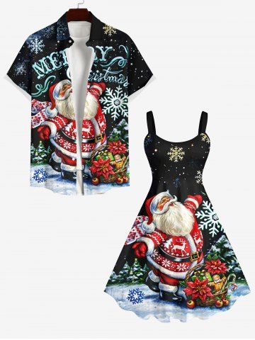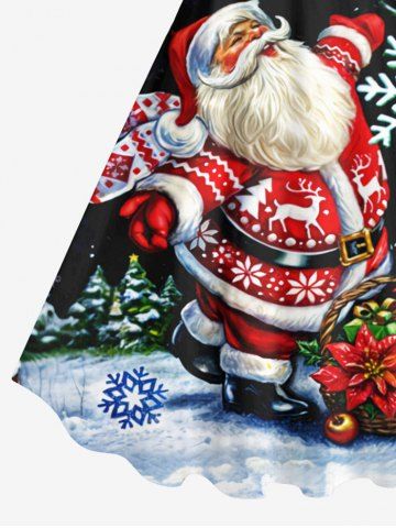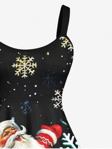 Plus Size Christmas Santa Claus Flowers Gingerbread Snowflake Print Tank Dress - Black - L