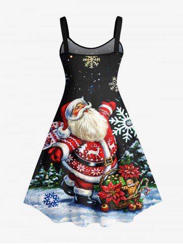 Plus Size Christmas Santa Claus Flowers Gingerbread Snowflake Print Tank Dress - Black - 5x