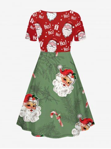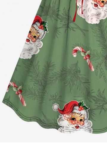 Plus Size Christmas Santa Claus Gift Letter Candy Branch Print Cinched A Line Dress - Green - L