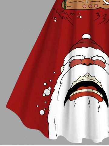 Plus Size Christmas Santa Claus Gingerbread Colorblock Print Tank Dress - Red - L