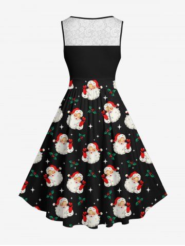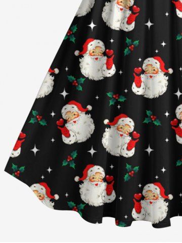 Plus Size Christmas Santa Claus Holly Fruit Heart Print 1950s Vintage Dress - Black - L