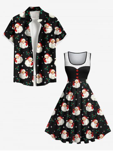 Plus Size Christmas Santa Claus Holly Fruit Heart Print 1950s Vintage Dress - Black - 1x