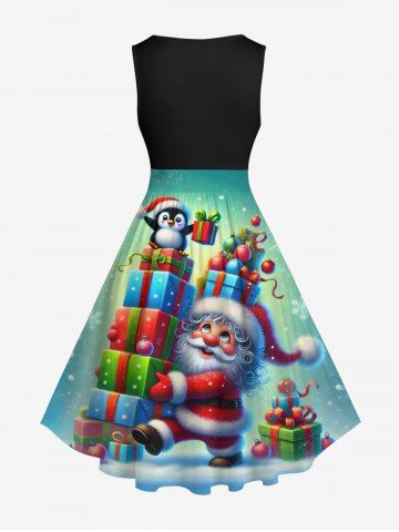 Plus Size Christmas Santa Claus Penguin Snowflake Print 1950s Vintage Dress - Jade Green - S
