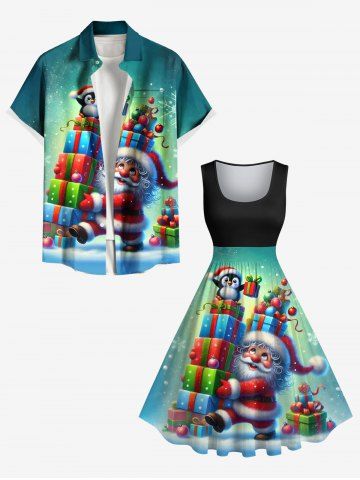 Plus Size Christmas Santa Claus Penguin Snowflake Print 1950s Vintage Dress - Jade Green - L